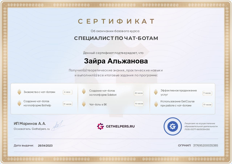 Оттачивала свои знания в одной из лучших школ по подготовке технических специалистов Getcourse — в школе Gethelpers. Грамотная речь и письмо, врожденное чувство грамотности, чувство текста помогут мне, при необходимости, отшлифовать ваш текст до идеала