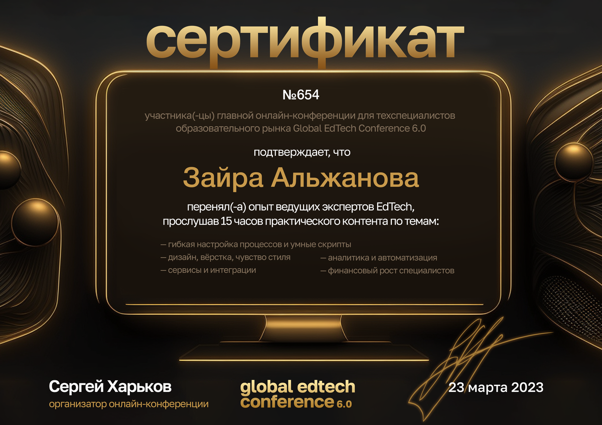 В период обучения создала работающие процессы по заказам и процесс реализации онлайн-школы по клубному формату: рекуррентные платежи.